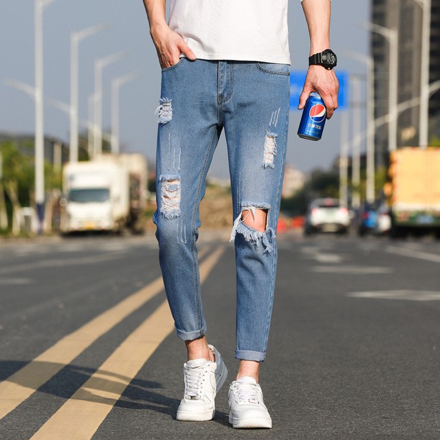 Seluar Jeans Men Seluar Jeans Lelaki Koyak Autumn New Style Youth Korean Slim Beggar Jeans Men S Ripped Cropped Pants Se Shopee Malaysia